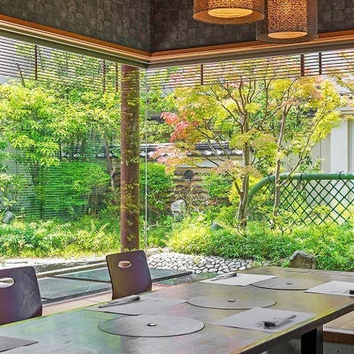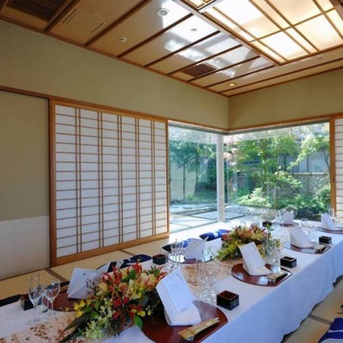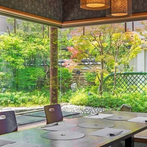 ホテル最上階日本庭園のみえる個室や雰囲気を楽しめる